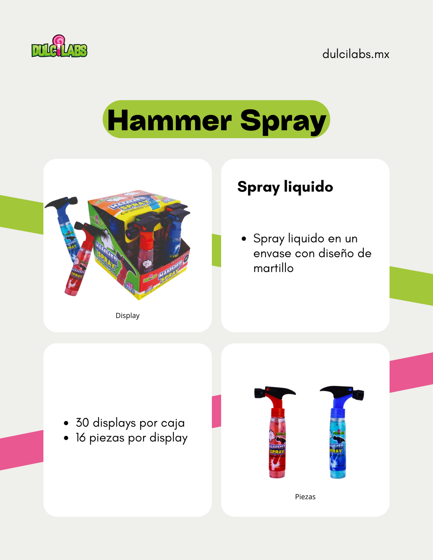 Un divertido spray de caramelo líquido, que viene en un envase que simula una herramienta de martillo