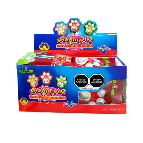 Paletas de caramelo macizo en forma de huella, y palo de luz que brilla en la obscuridad